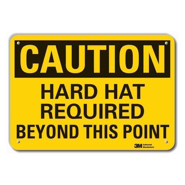Caution Sign, Horizontal Rectangle, Number of Printed Sides 1, English, Sign Format Traditional OSHA, Sign Legend Hard Hat Required Beyond This Point, Sign Legend Background Color Yellow, Sign Legend Style Text