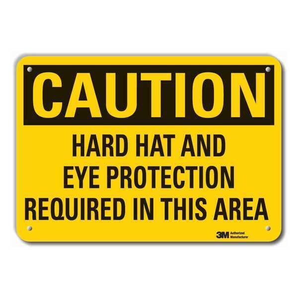 Caution Sign, Horizontal Rectangle, Number of Printed Sides 1, English, Sign Format Traditional OSHA, Sign Legend Hard Hat And Eye Protection Required In This Area, Sign Legend Background Color Yellow, Sign Legend Style Text