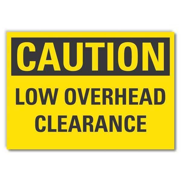 Caution Sign, Horizontal Rectangle, Number of Printed Sides 1, English, Sign Format Traditional OSHA, Sign Legend Low Overhead Clearance, Sign Legend Background Color Yellow, Sign Legend Style Text