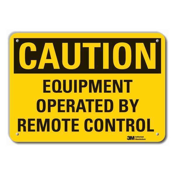 Caution Sign, Horizontal Rectangle, Number of Printed Sides 1, English, Sign Format Traditional OSHA, Sign Legend Equipment Operated By Remote Control, Sign Legend Background Color Yellow, Sign Legend Style Text