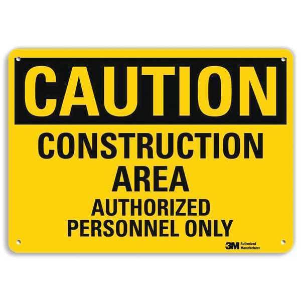 Caution Sign, Horizontal Rectangle, Number of Printed Sides 1, English, Sign Format Traditional OSHA, Sign Legend Construction Area Authorized Personnel Only, Sign Legend Background Color Yellow, Sign Legend Style Text