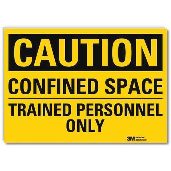 Caution Sign, Horizontal Rectangle, Number of Printed Sides 1, English, Sign Format Traditional OSHA, Sign Legend Confined Space Trained Personnel Only, Sign Legend Background Color Yellow, Sign Legend Style Text