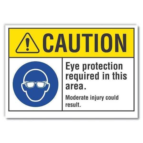 Caution Sign, Vertical Rectangle, Number of Printed Sides 1, English, Sign Format ANSI/OSHA Format, Sign Legend Eye Protection Required In This Area. Moderate Injury Could Result., Sign Legend Background Color Yellow, Sign Legend Style Symbol and Text