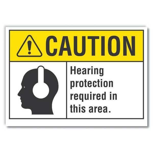 Caution Sign, Vertical Rectangle, Number of Printed Sides 1, English, Sign Format ANSI/OSHA Format, Sign Legend Hearing Protection Required In This Area., Sign Legend Background Color Yellow, Sign Legend Style Symbol and Text