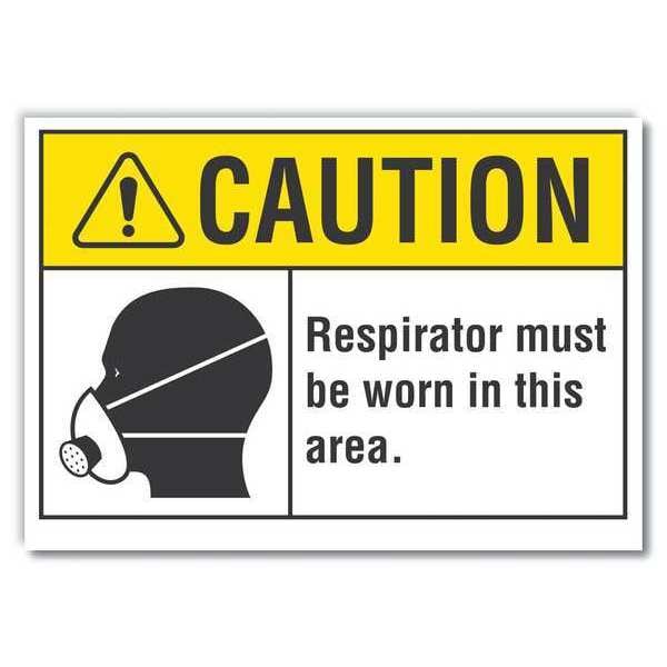 Caution Sign, Vertical Rectangle, Number of Printed Sides 1, English, Sign Format ANSI/OSHA Format, Sign Legend Respirator Must Be Worn In This Area, Sign Legend Background Color Yellow, Sign Legend Style Symbol and Text