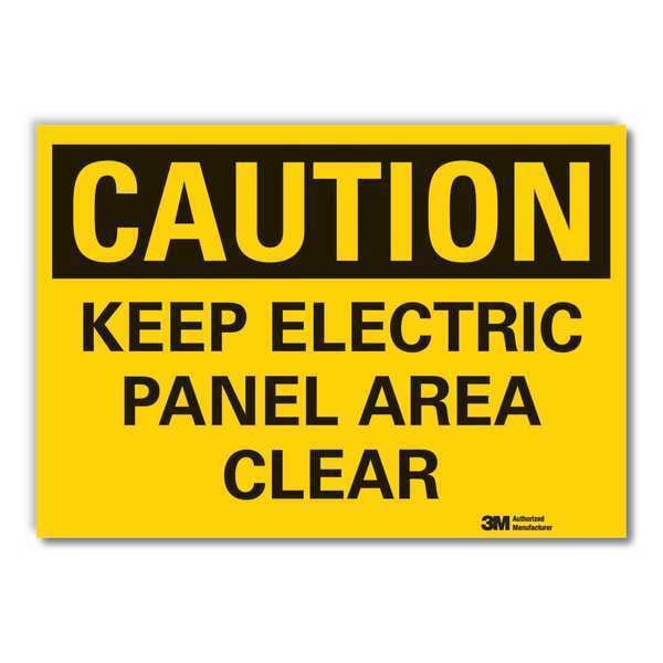 Caution Sign, Vertical Rectangle, Number of Printed Sides 1, English, Sign Format Traditional OSHA, Sign Legend Keep Electric Panel Area Clear, Sign Legend Background Color Yellow, Sign Legend Style Text