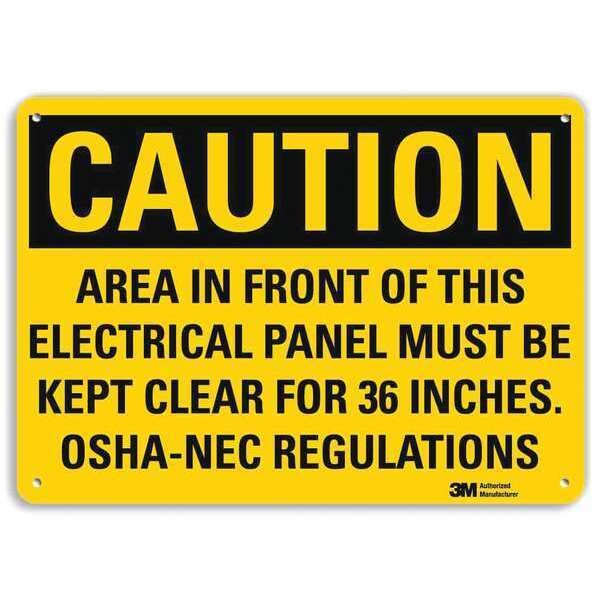 Caution Sign, Vertical Rectangle, Number of Printed Sides 1, English, Sign Format Traditional OSHA, Sign Legend Area In Front Of This Electrical Panel Must Be Kept Clear For 36 Inches Osha-Nec Regulation, Sign Legend Background Color Yellow, Sign Legend Style Text