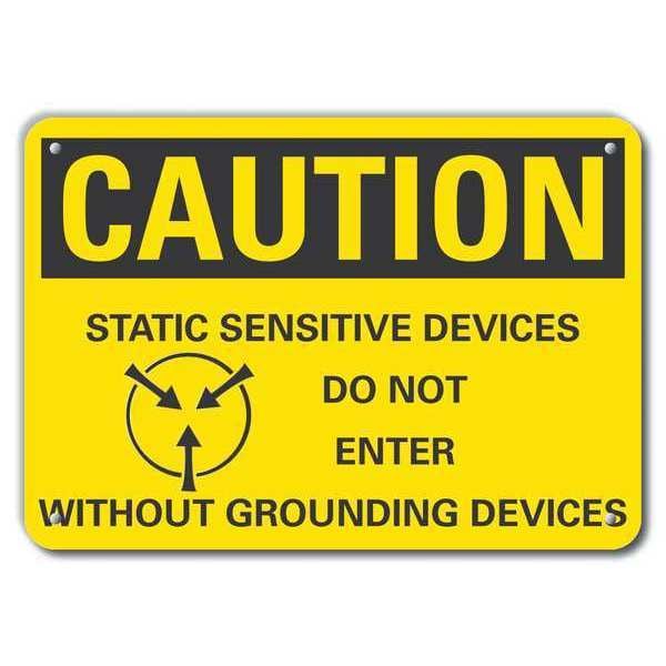 Caution Sign, Vertical Rectangle, Number of Printed Sides 1, English, Sign Legend Static Sensitive Devices Do Not Enter Without Grounding Devices, Sign Legend Background Color Yellow, Sign Legend Style Symbol and Text