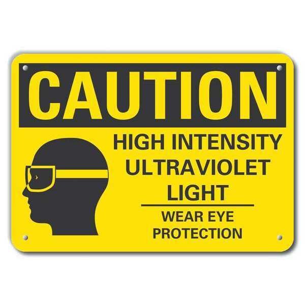 Caution Sign, Vertical Rectangle, Number of Printed Sides 1, English, Sign Legend High Intensity Ultraviolet Light Wear Eye Protection, Sign Legend Background Color Yellow, Sign Legend Style Symbol and Text