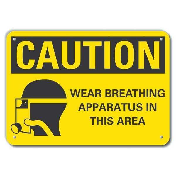 Caution Sign, Vertical Rectangle, Number of Printed Sides 1, English, Sign Legend Wear Breathing Apparatus In This Area, Sign Legend Background Color Yellow, Sign Legend Style Symbol and Text