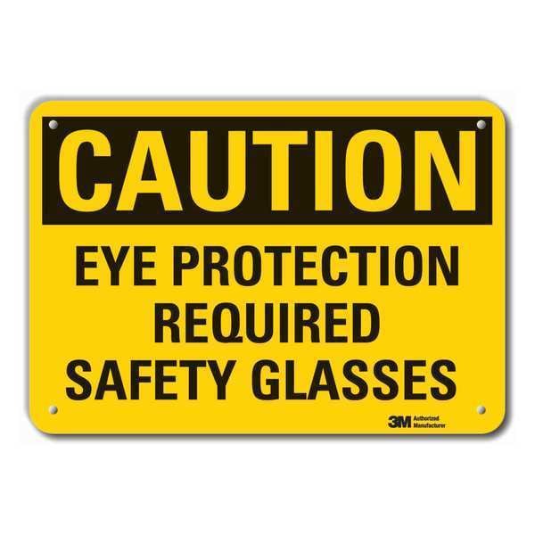 Caution Sign, Vertical Rectangle, Number of Printed Sides 1, English, Sign Format Traditional OSHA, Sign Legend Eye Protection Required Safety Glasses, Sign Legend Background Color Yellow, Sign Legend Style Text