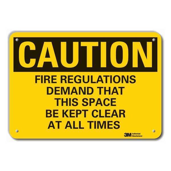 Caution Sign, Vertical Rectangle, Number of Printed Sides 1, English, Sign Format Traditional OSHA, Sign Legend Fire Regulations Demand That This Space Be Kept Clear At All Times, Sign Legend Background Color Yellow, Sign Legend Style Text