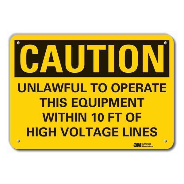 Caution Sign, Vertical Rectangle, Number of Printed Sides 1, English, Sign Format Traditional OSHA, Sign Legend Unlawful To Operate This Equipment Within 10 Ft Of High Voltage Lines, Sign Legend Background Color Yellow, Sign Legend Style Text