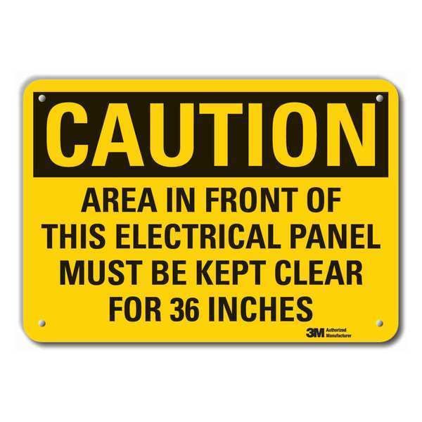 Caution Sign, Vertical Rectangle, Number of Printed Sides 1, English, Sign Format Traditional OSHA, Sign Legend Area In Front Of This Electrical Panel Must Be Kept Clear For 36 Inches, Sign Legend Background Color Yellow, Sign Legend Style Text