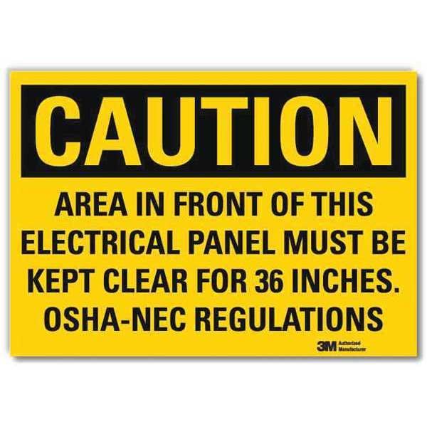 Caution Sign, Vertical Rectangle, Number of Printed Sides 1, English, Sign Format Traditional OSHA, Sign Legend Area In Front Of This Electrical Panel Must Be Kept Clear For 36 Inches Osha-Nec Regulation, Sign Legend Background Color Yellow, Sign Legend Style Text