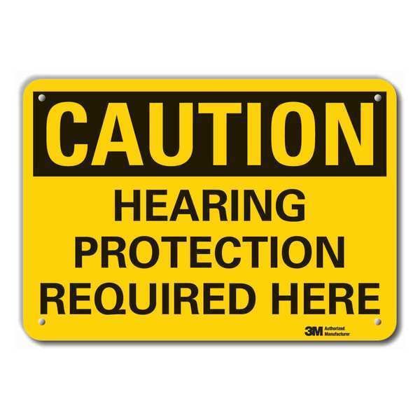 Caution Sign, Horizontal Rectangle, Number of Printed Sides 1, English, Sign Format Traditional OSHA, Sign Legend Hearing Protection Required Here, Sign Legend Background Color Yellow, Sign Legend Style Text