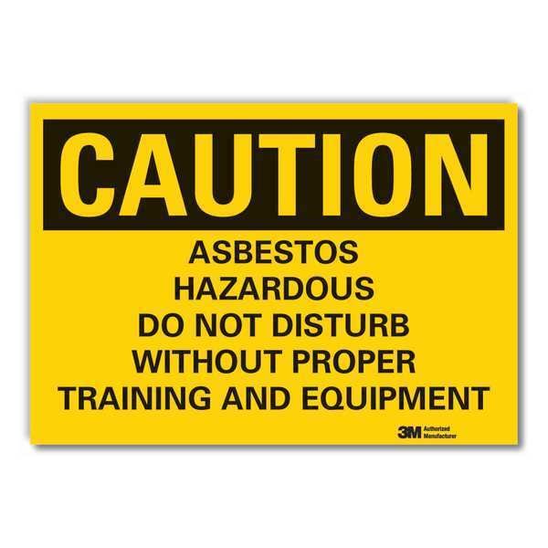 Caution Sign, Horizontal Rectangle, Number of Printed Sides 1, English, Sign Format Traditional OSHA, Sign Legend Asbestos Hazardous Do Not Disturb Without Proper Training And Equipment, Sign Legend Background Color Yellow, Sign Legend Style Text