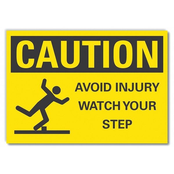 Caution Sign, Horizontal Rectangle, Number of Printed Sides 1, English, Sign Format ANSI/OSHA Format, Sign Legend Avoid Injury Watch Your Step, Sign Legend Background Color Yellow, Sign Legend Style Symbol and Text