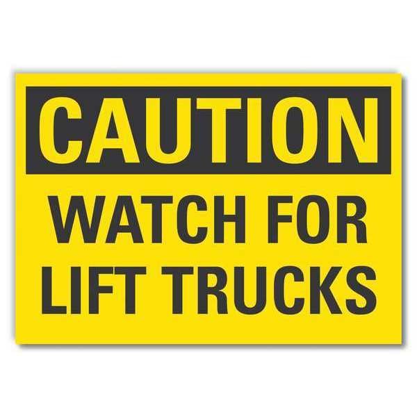 Caution Sign, Horizontal Rectangle, Number of Printed Sides 1, English, Sign Format Traditional OSHA, Sign Legend Watch For Lift Trucks, Sign Legend Background Color Yellow, Sign Legend Style Text