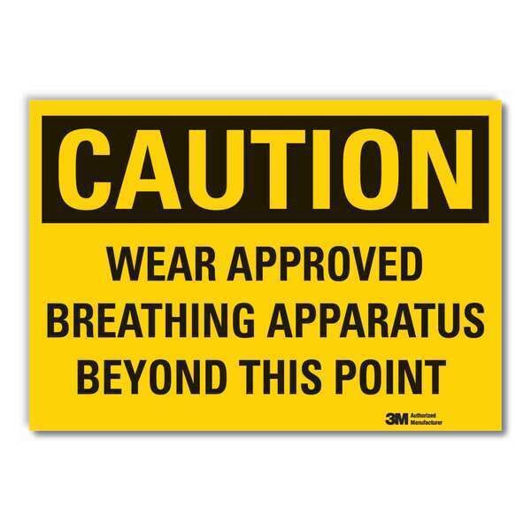 Breathing Apparatus Caution Reflective Label, Horizontal Rectangle, Number of Printed Sides 1, English, Sign Format Traditional OSHA, Sign Legend Wear Approved Breathing Apparatus Beyond This Point, Sign Legend Background Color Yellow, Sign Legend Style Text