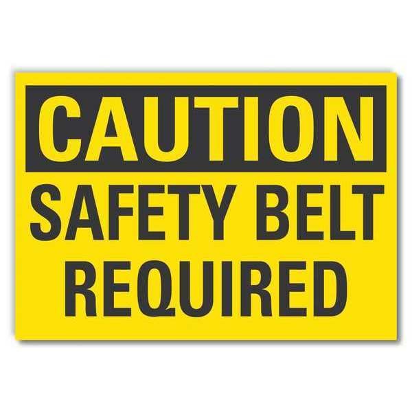 Caution Sign, Horizontal Rectangle, Number of Printed Sides 1, English, Sign Format Traditional OSHA, Sign Legend Safety Belt Required, Sign Legend Background Color Yellow, Sign Legend Style Text