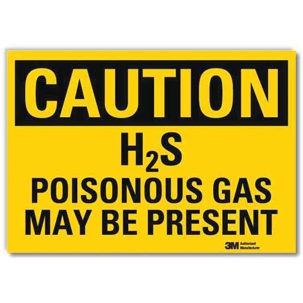 Caution Sign, Horizontal Rectangle, Number of Printed Sides 1, English, Sign Format Traditional OSHA, Sign Legend H2S Poisonous Gas May Be Present, Sign Legend Background Color Yellow, Sign Legend Style Text