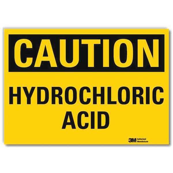 Caution Sign, Horizontal Rectangle, Number of Printed Sides 1, English, Sign Format Traditional OSHA, Sign Legend Hydrochloric Acid, Sign Legend Background Color Yellow, Sign Legend Style Text