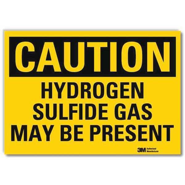 Caution Sign, Horizontal Rectangle, Number of Printed Sides 1, English, Sign Format Traditional OSHA, Sign Legend Hydrogen Sulfide Gas May Be Present, Sign Legend Background Color Yellow, Sign Legend Style Text