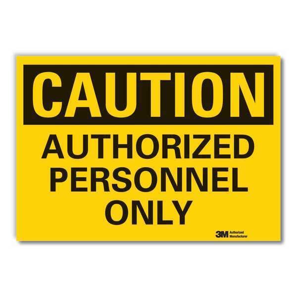 Caution Sign, Horizontal Rectangle, Number of Printed Sides 1, English, Sign Format Traditional OSHA, Sign Legend Authorized Personnel Only, Sign Legend Background Color Yellow, Sign Legend Style Text