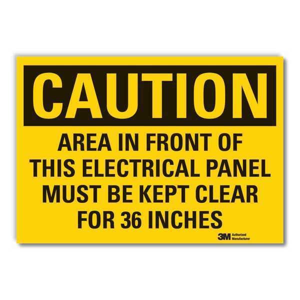 Caution Sign, Horizontal Rectangle, Number of Printed Sides 1, English, Sign Format Traditional OSHA, Sign Legend Area In Front Of This Electrical Panel Must Be Kept Clear For 36 Inches, Sign Legend Background Color Yellow, Sign Legend Style Text