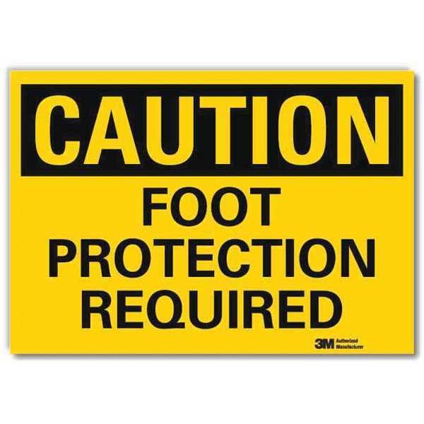 Caution Sign, Horizontal Rectangle, Number of Printed Sides 1, English, Sign Format Traditional OSHA, Sign Legend Foot Protection Required, Sign Legend Background Color Yellow, Sign Legend Style Text