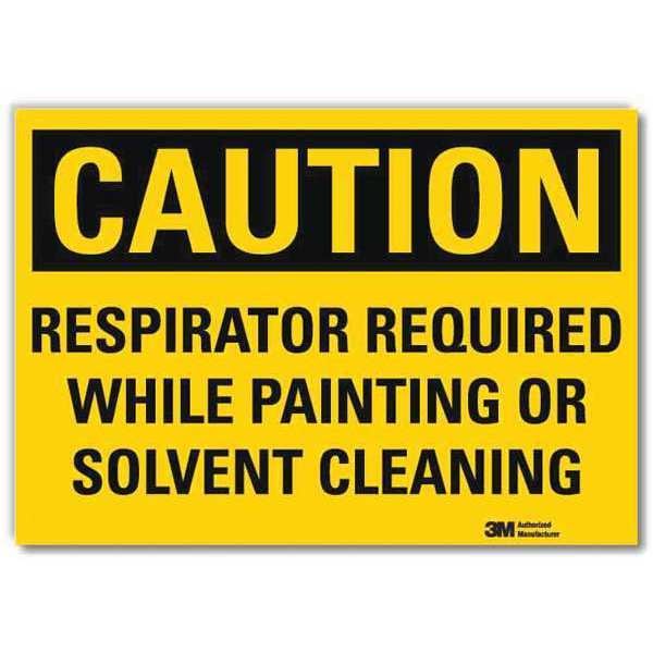 Caution Sign, Horizontal Rectangle, Number of Printed Sides 1, English, Sign Format Traditional OSHA, Sign Legend Respirator Required While Painting Or Solvent Cleaning, Sign Legend Background Color Yellow, Sign Legend Style Text