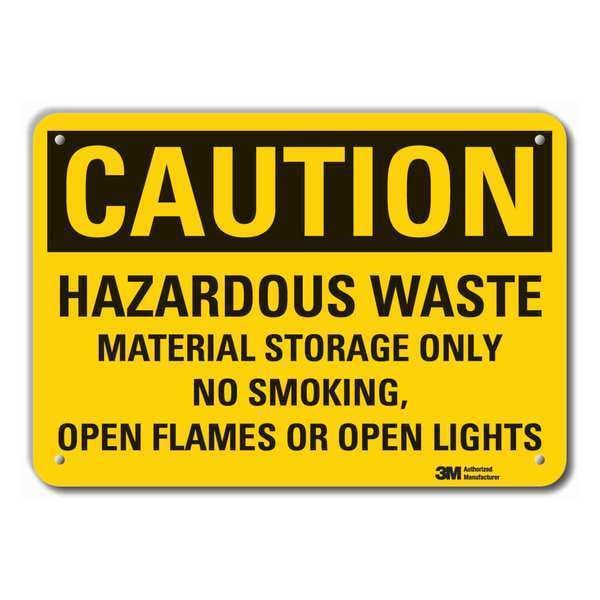 Caution Sign, Vertical Rectangle, Number of Printed Sides 1, English, Sign Format Traditional OSHA, Sign Legend Hazardous Waste Material Storage Only. No Smoking, Open Flames Or Open Lights, Sign Legend Background Color Yellow, Sign Legend Style Text