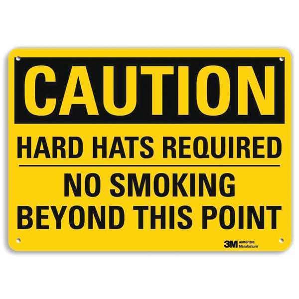 Caution Sign, Vertical Rectangle, Number of Printed Sides 1, English, Sign Format Traditional OSHA, Sign Legend Hard Hats Required No Smoking Beyond This Point, Sign Legend Background Color Yellow, Sign Legend Style Text