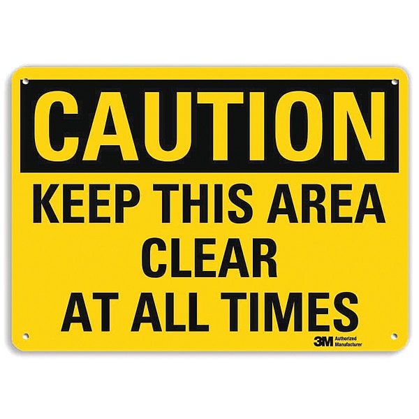 Caution Sign, Vertical Rectangle, Number of Printed Sides 1, English, Sign Legend Keep This Area Clear At All Times, Sign Legend Background Color Yellow, Sign Legend Style Text