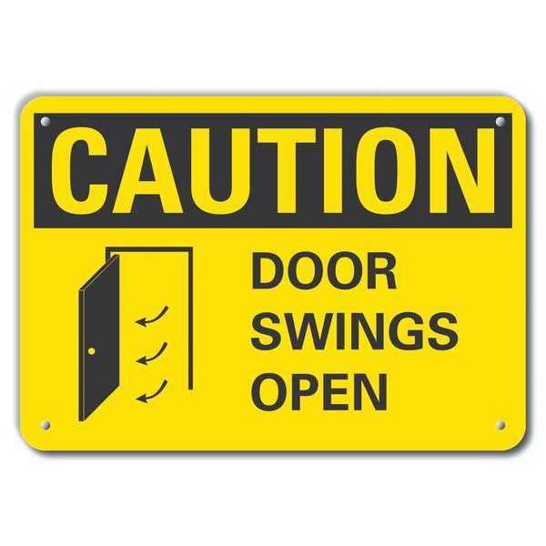 Caution Sign, Vertical Rectangle, Number of Printed Sides 1, English, Sign Legend Door Swings Open, Sign Legend Background Color Yellow, Sign Legend Style Symbol and Text