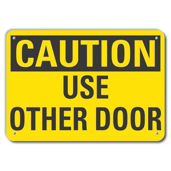 Caution Sign, Vertical Rectangle, Number of Printed Sides 1, English, Sign Legend Use Other Door, Sign Legend Background Color Yellow, Sign Legend Style Text