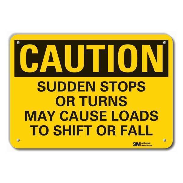 Caution Sign, Vertical Rectangle, Number of Printed Sides 1, English, Sign Format Traditional OSHA, Sign Legend Sudden Stops Or Turns May Cause Loads To Shift Or Fall, Sign Legend Background Color Yellow, Sign Legend Style Text