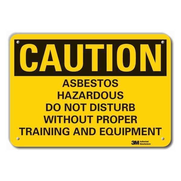 Caution Sign, Vertical Rectangle, Number of Printed Sides 1, English, Sign Format Traditional OSHA, Sign Legend Asbestos Hazardous Do Not Disturb Without Proper Training And Equipment, Sign Legend Background Color Yellow, Sign Legend Style Text