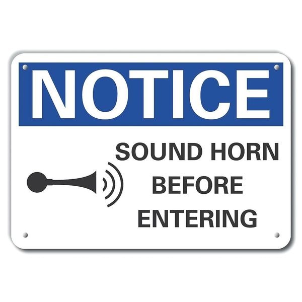 Caution Sign, Vertical Rectangle, Number of Printed Sides 1, English, Sign Format ANSI/OSHA Format, Sign Legend Sound Horn Before Entering, Sign Legend Background Color White, Sign Legend Style Symbol and Text