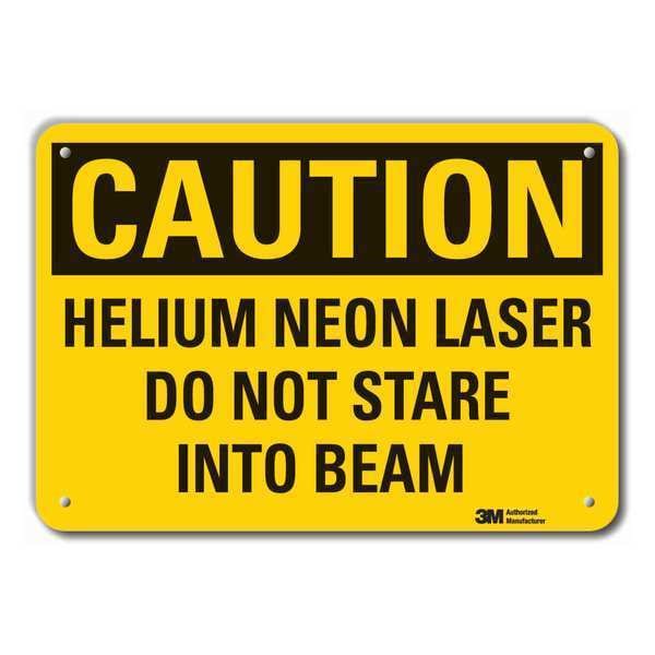 Caution Sign, Vertical Rectangle, Number of Printed Sides 1, English, Sign Format Traditional OSHA, Sign Legend Helium Neon Laser Do Not Stare Into Beam, Sign Legend Background Color Yellow, Sign Legend Style Text