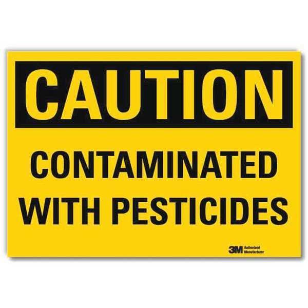 Caution Sign, Vertical Rectangle, Number of Printed Sides 1, English, Sign Format Traditional OSHA, Sign Legend Contaminated With Pesticides, Sign Legend Background Color Yellow, Sign Legend Style Text