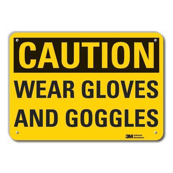 Reflective Eye & Hand Caution Sign, Vertical Rectangle, Number of Printed Sides 1, English, Sign Format Traditional OSHA, Sign Legend Wear Gloves And Goggles, Sign Legend Background Color Yellow, Sign Legend Style Text
