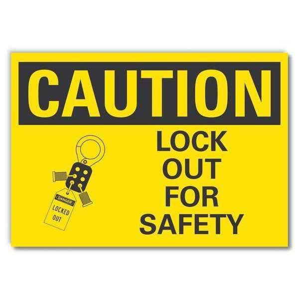 Caution Sign, Vertical Rectangle, Number of Printed Sides 1, English, Sign Legend Lock Out For Safety, Sign Legend Background Color Yellow, Sign Legend Style Symbol and Text