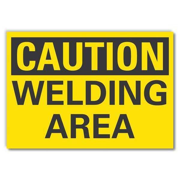 Caution Sign, Vertical Rectangle, Number of Printed Sides 1, English, Sign Format Traditional OSHA, Sign Legend Welding Area, Sign Legend Background Color Yellow, Sign Legend Style Text