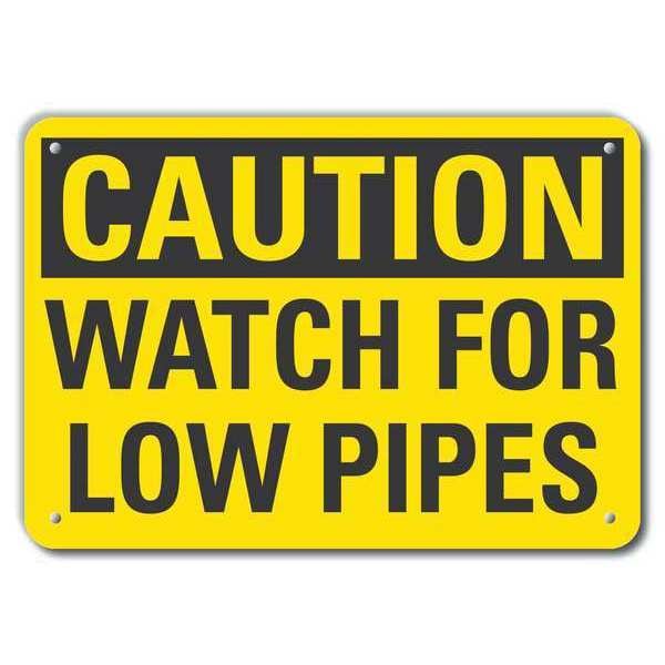 Caution Sign, Vertical Rectangle, Number of Printed Sides 1, English, Sign Format Traditional OSHA, Sign Legend Watch For Low Pipes, Sign Legend Background Color Yellow, Sign Legend Style Text
