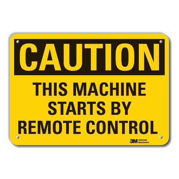 Caution Sign, Vertical Rectangle, Number of Printed Sides 1, English, Sign Format Traditional OSHA, Sign Legend This Machine Starts By Remote Control, Sign Legend Background Color Yellow, Sign Legend Style Text