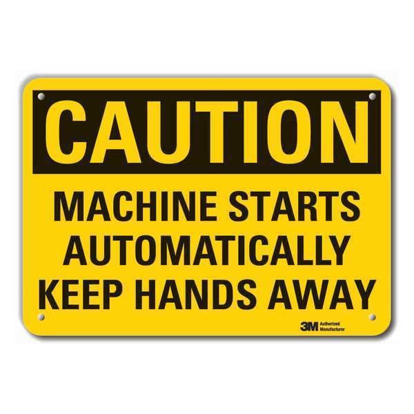 Caution Sign, Vertical Rectangle, Number of Printed Sides 1, English, Sign Format Traditional OSHA, Sign Legend Machine Starts Automatically Keep Hands Away, Sign Legend Background Color Yellow, Sign Legend Style Text
