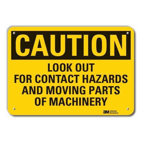 Caution Sign, Vertical Rectangle, Number of Printed Sides 1, English, Sign Format Traditional OSHA, Sign Legend Look Out For Contact Hazards And Moving Parts Of Machinery, Sign Legend Background Color Yellow, Sign Legend Style Text