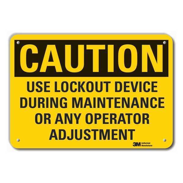 Caution Sign, Vertical Rectangle, Number of Printed Sides 1, English, Sign Format Traditional OSHA, Sign Legend Use Lockout Device During Maintenance Or Any Operator Adjustment, Sign Legend Background Color Yellow, Sign Legend Style Text